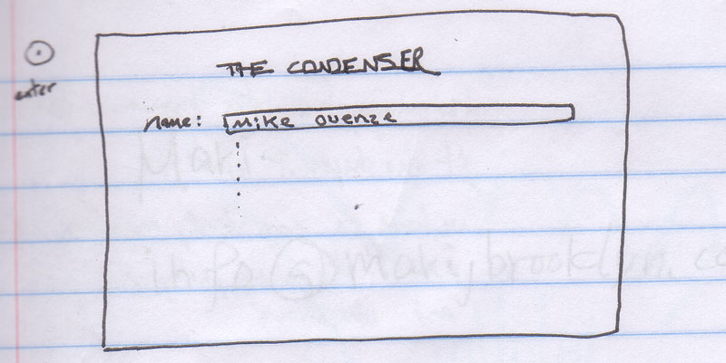 Imagine this as an index of people and the things they do and make. The condenser treats everyone as an artist. It looks for work they make, people they work for, and work they appear in. It googles their name along with a lot of related terms and it searches for them in multiple places at once. It aggregates this data and presents it in a format like this:
